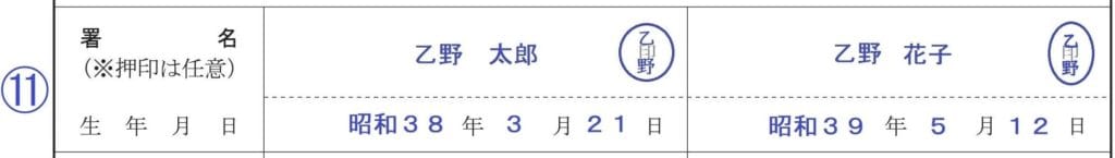 ⑪署名、生年月日