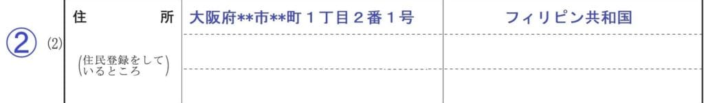 - 既に本人が日本に居住している場合は上記日本人と同じ要領で記入します。外国に居住している場合は国名を正式名称で記入します。(外国の住居地の記入は不要です)