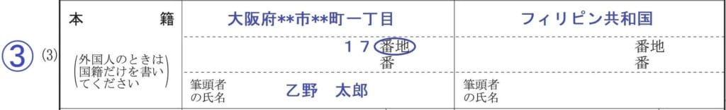 - 日本人が戸籍の筆頭者でない場合は、新しく編成される戸籍の本籍地を記入します。