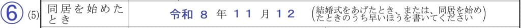 夫妻が同居を始めた年月、結婚式を挙げた年月のうち早い方を記入します。配偶者が海外に住んでおり、結婚式を挙げておらずこれから配偶者ビザで日本に呼び寄せる予定の場合は空欄で差し支えありません。