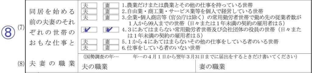 夫の職業、妻の職業欄は国勢調査が行われる年の4月1日から翌年3月31日までに届出をするときだけ記入します。