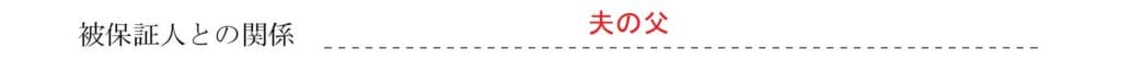 申請人=夫 保証人=妻の父 【妻の父】と記入