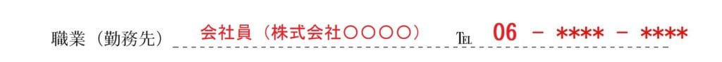 身元保証人が会社員の場合の職業欄は「会社員」と記入し、その隣にかっこ書きで会社名を記入します。