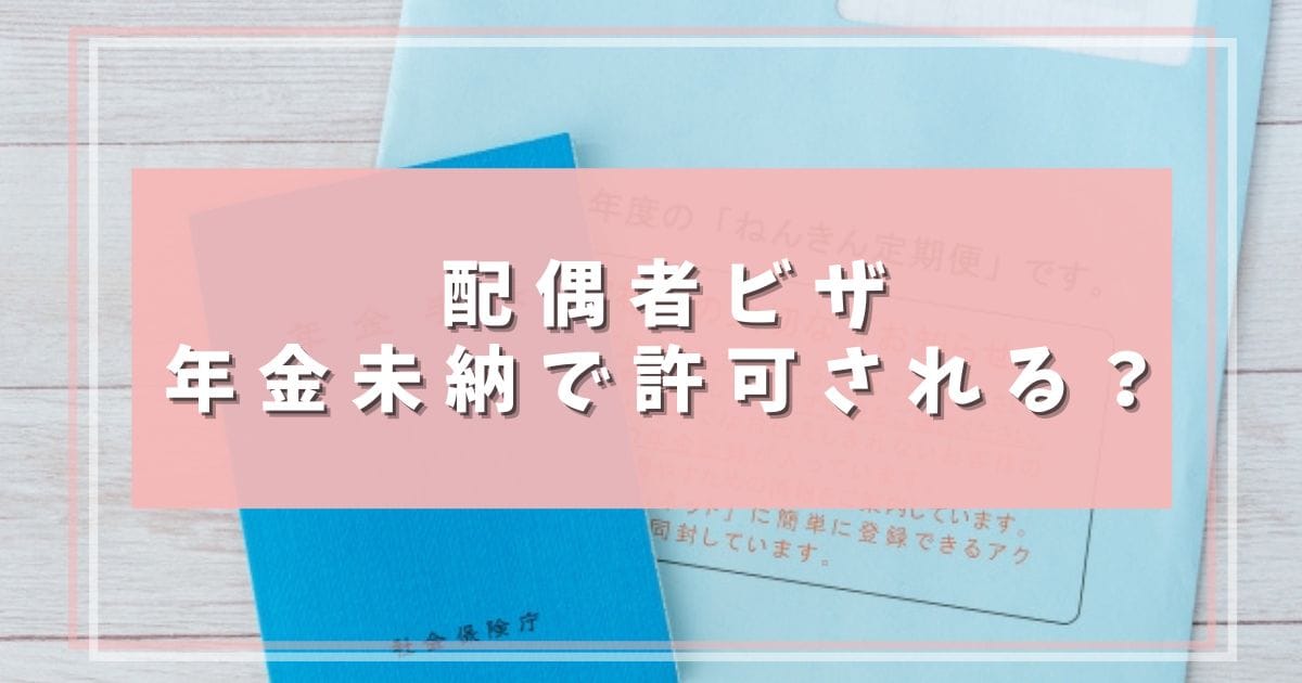 配偶者ビザの申請(在留資格変更・在留期間更新・在留資格認定証明書交付申請)では年金の加入状況についての資料は提出資料とされておらず、年金が未納であっても現時点では許可がでています。しかし近年出入国在留管理局の審査も厳格化されている傾向があり(永住許可申請や経営管理ビザは以前も年金の加入状況についての資料の提出は不要でしたが、基準変更に伴い、提出が必要となりました)将来的に年金の加入状況についての資料の提出が必須になることも考えられます。